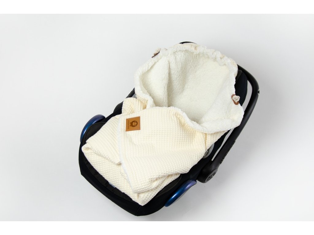 Zimní deka do vajíčka v béžovém odstínu přináší ideální kombinaci tepla, bezpečí a stylu pro chladné měsíce. Díky rozšířenému rozměru 95×95 cm poskytuje dostatek prostoru pro pohodlné zabalení novorozenců i větších miminek. Tato zimní verze je vyrobena z kvalitní vafloviny (100% bavlna) na vnější straně a luxusně měkkého umělého beránka uvnitř, který miminko spolehlivě zahřeje i v nejmrazivějším počasí.