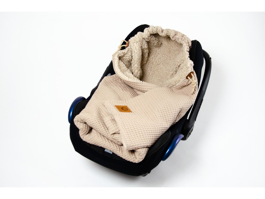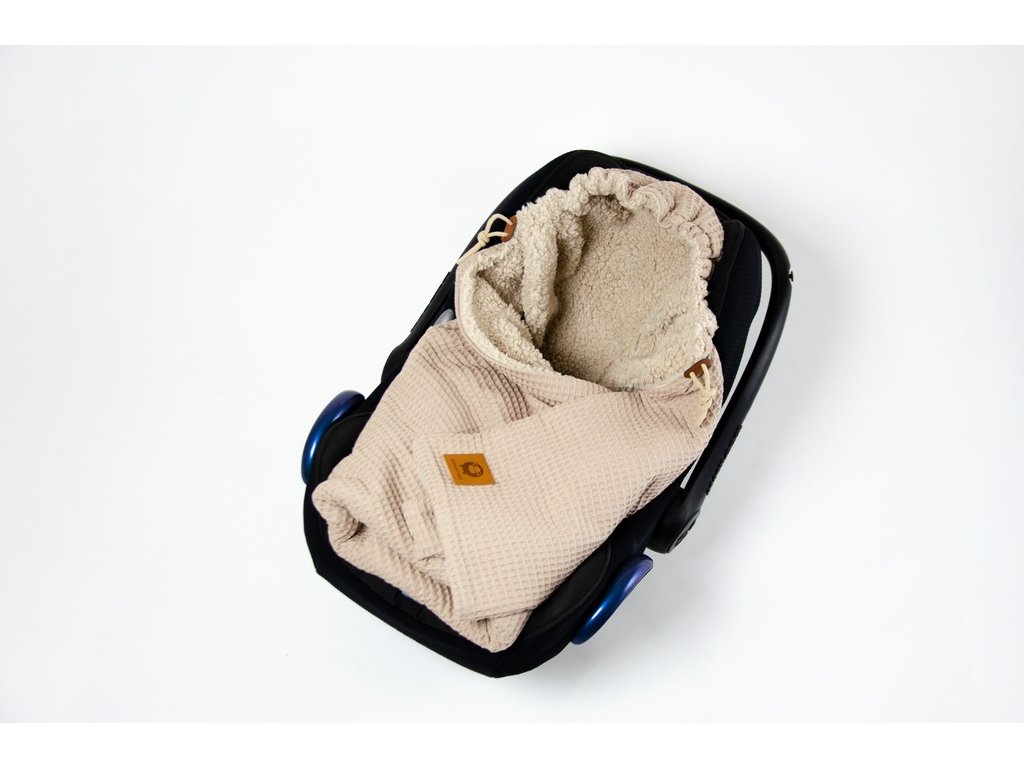 Zimní deka do vajíčka ve světlém šedohnědém odstínu přináší ideální kombinaci tepla, bezpečí a stylu pro chladné měsíce. Díky rozšířenému rozměru 95×95 cm poskytuje dostatek prostoru pro pohodlné zabalení novorozenců i větších miminek. Tato zimní verze je vyrobena z kvalitní vafloviny (100% bavlna) na vnější straně a luxusně měkkého umělého beránka uvnitř, který miminko spolehlivě zahřeje i v nejmrazivějším počasí.