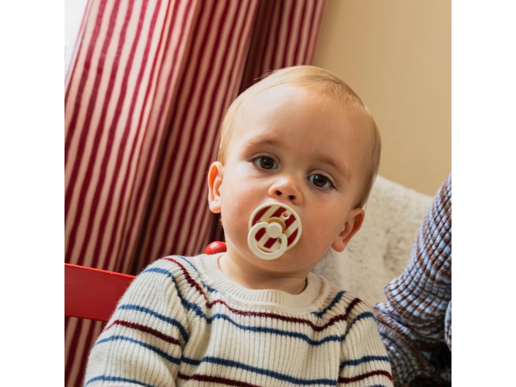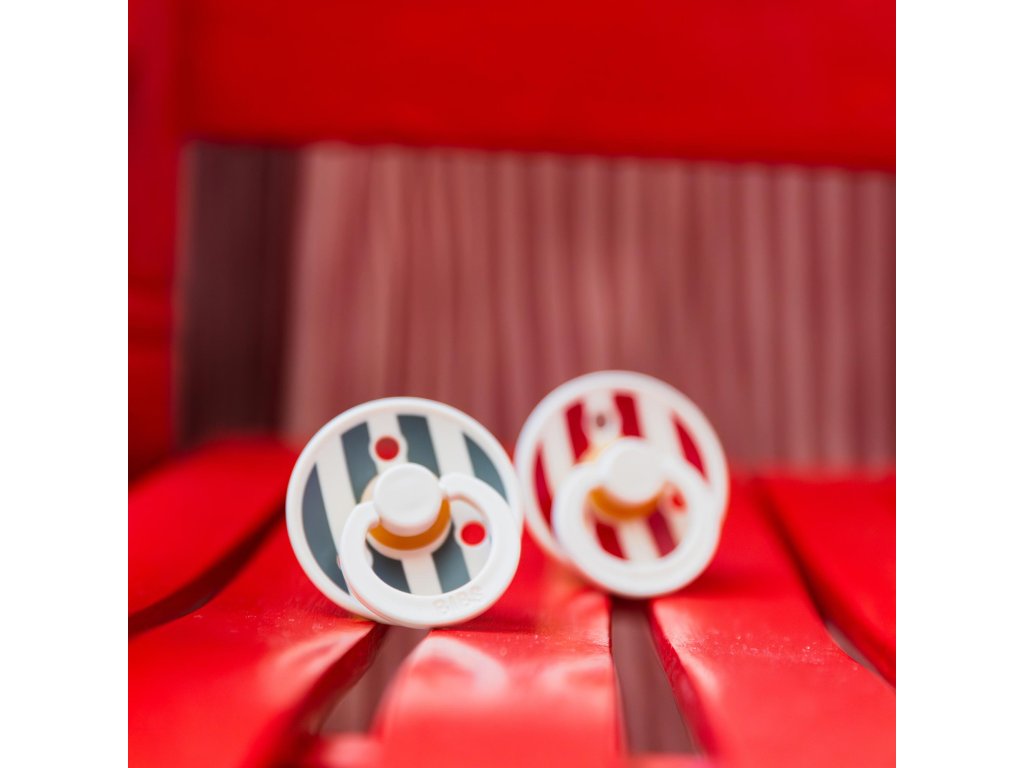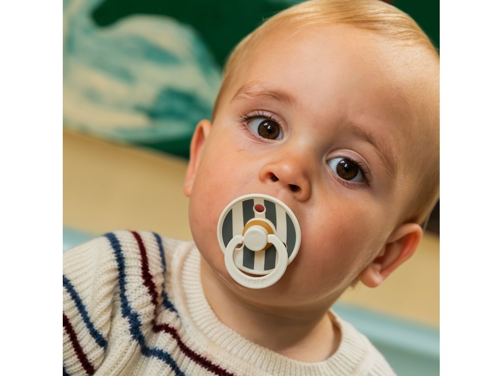 BIBS dobývají celý svět. Jednoduché a stylové. Sací část je vyrobena ze 100% přírodního kaučuku, který je mimořádně pružný a měkký zároveň, odolný vůči vytvoření trhlin a odštěpení malých kousků. Dudlík je navržen tak, aby nedráždil citlivou pokožku miminka. Kulatý kroužek s větracími otvory má klenutý tvar, téměř vůbec se nedotýká pokožky kolem úst, ta proto zůstává klidná, bez otisků a podráždění. Díky měkoučkému kaučuku a zabudovanému vzduchovému ventilu dítě dudlík snadno stlačuje a formuje v ústech, čímž je zachován přirozený vývoj patra, dásní a zoubků dětí.
