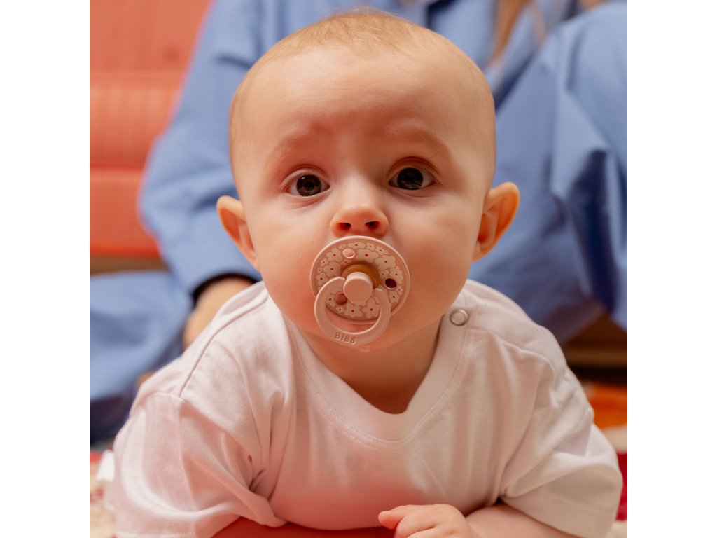BIBS dobývají celý svět. Jednoduché a stylové. Sací část je vyrobena ze 100% přírodního kaučuku, který je mimořádně pružný a měkký zároveň, odolný vůči vytvoření trhlin a odštěpení malých kousků. Dudlík je navržen tak, aby nedráždil citlivou pokožku miminka. Kulatý kroužek s větracími otvory má klenutý tvar, téměř vůbec se nedotýká pokožky kolem úst, ta proto zůstává klidná, bez otisků a podráždění. Díky měkoučkému kaučuku a zabudovanému vzduchovému ventilu dítě dudlík snadno stlačuje a formuje v ústech, čímž je zachován přirozený vývoj patra, dásní a zoubků dětí.