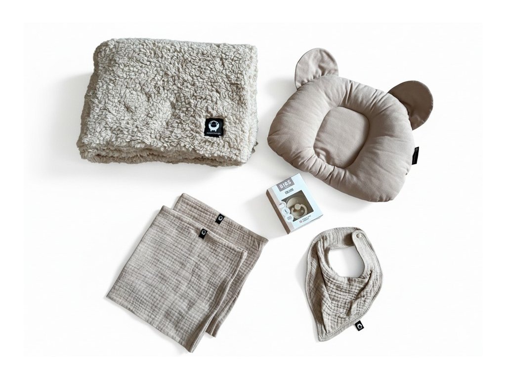 Obsah boxu je vybrán s důrazem na šetrné materiály, bezpečnost a každodenní využití. Najdete v něm produkty, které usnadní péči o miminko a zároveň přinesou radost – například hebké textilie, drobné doplňky nebo další nezbytnosti pro první týdny života. Každý detail je sladěn do harmonického celku, aby dárek působil elegantně a promyšleně.