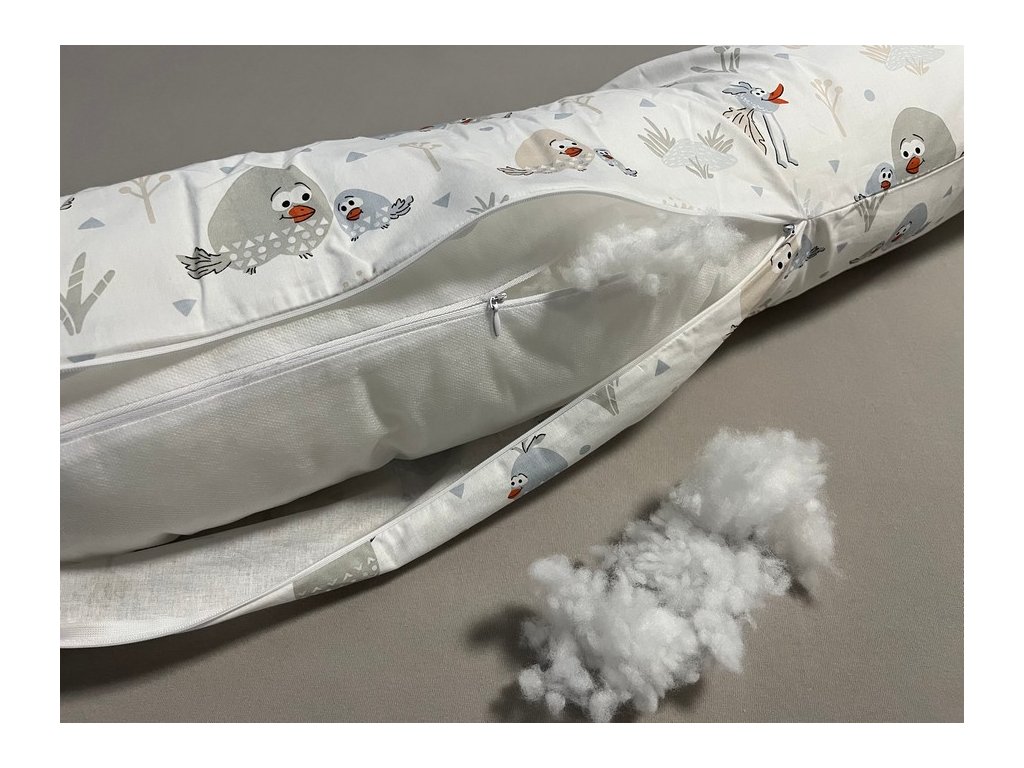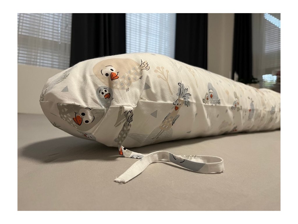 Oblíbený model z porodnice v Liberci nyní i u vás doma! Kojící polštář ve tvaru dlouhého válce (cca 155 × 30 cm) si maminky zamilovaly pro jeho pohodlí, praktičnost a univerzální použití. Je ušitý ze 100% bavlněného plátna, které je příjemné na dotek, prodyšné a snadno udržovatelné. Snímatelný povlak lze jednoduše sundat a vyprat, stejně jako celý vnitřní polštář včetně výplně. Navíc si můžete množství výplně upravit podle vlastních preferencí – doplnit pro větší oporu nebo odebrat pro měkčí pocit. Výplň je nejkvalitnější duté kuličkové vlákno, které si udržuje stálý tvar.
