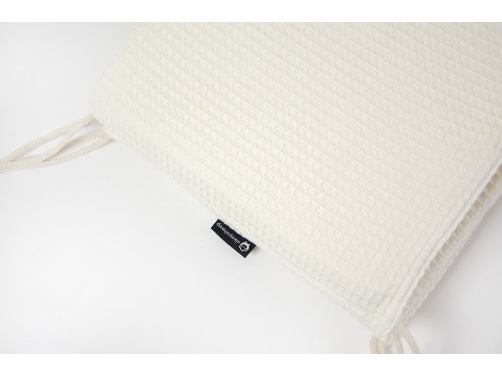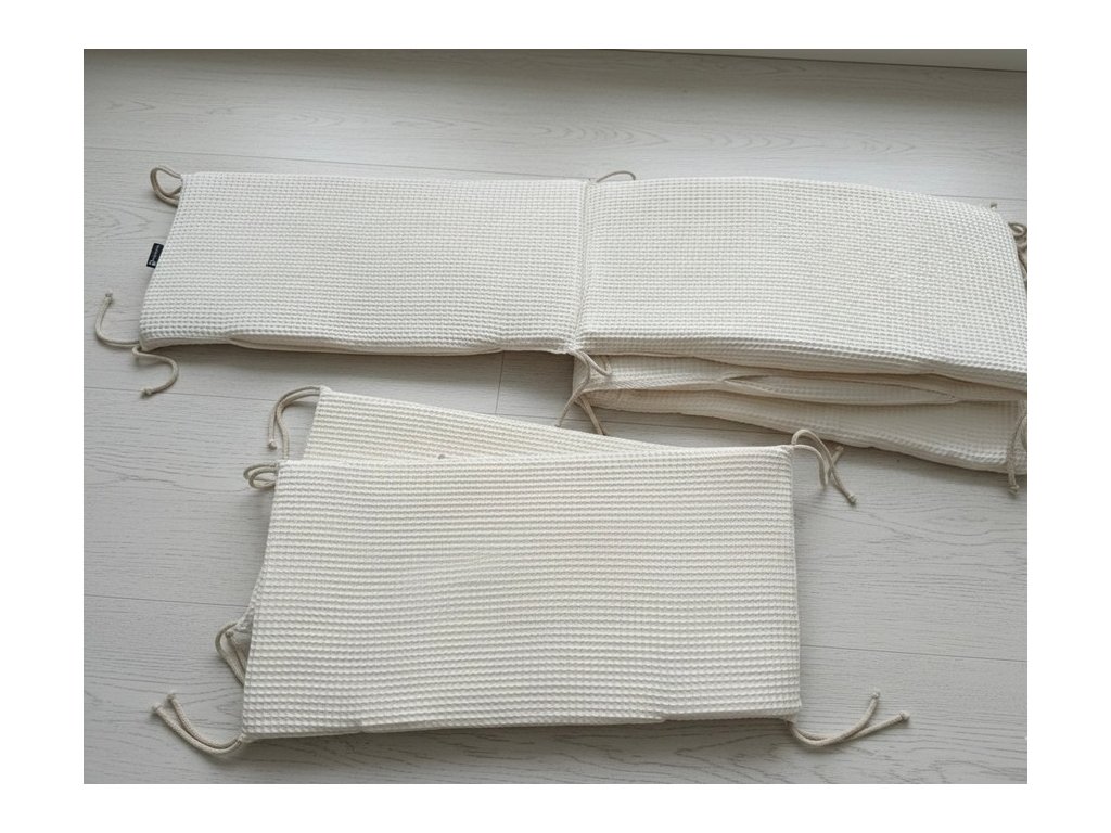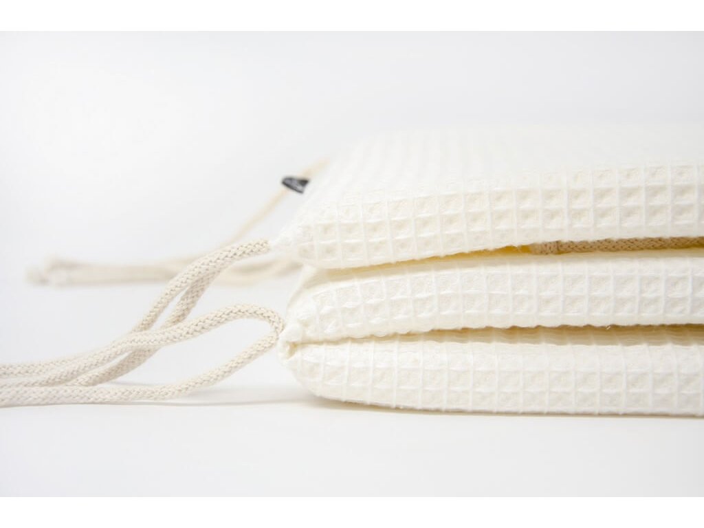 Povlak je vyroben z jemné vaflové bavlny (100 % bavlna), která je prodyšná, příjemná na dotek a snadno udržovatelná. Díky snímatelnému povlaku je údržba mantinelu velmi jednoduchá.