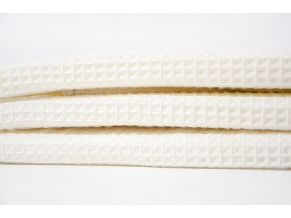 - Vaflovina se po vyprání znatelně zmenší, ale není třeba se obávat – po přežehlení párou se opět vrátí do původní velikosti.
