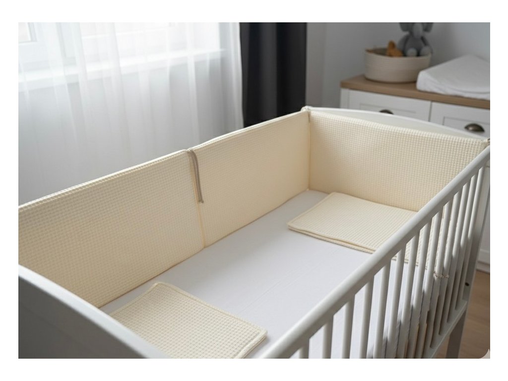Béžový molitanový mantinel do postýlky poskytne vašemu miminku bezpečí, pohodlí a klidný spánek od narození až po starší děti.