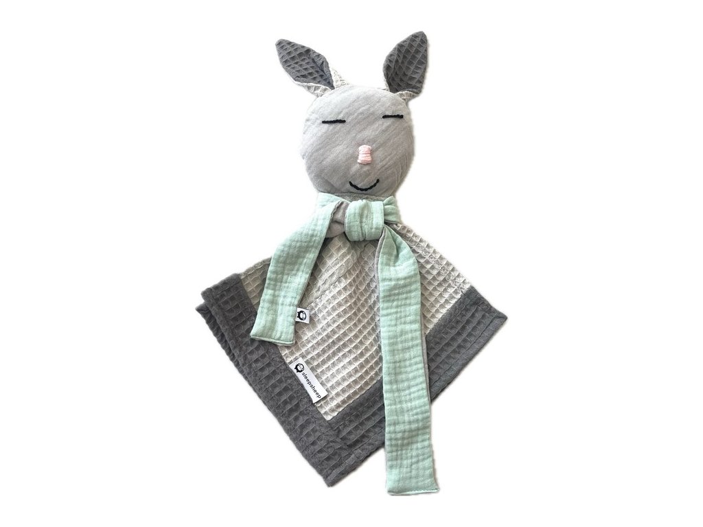 Muchláček ve světle šedé barvě s jemnými mintovými detaily je dokonalým společníkem pro vaše miminko. Tento ručně šitý mazlíček z atestovaných materiálů poskytuje miminku pocit bezpečí, klidu a důvěrného objetí, které napomáhá snadnějšímu usínání. Díky ideální velikosti 40 cm je tak akorát do malých dětských ručiček – na tulení, držení i mazlení.